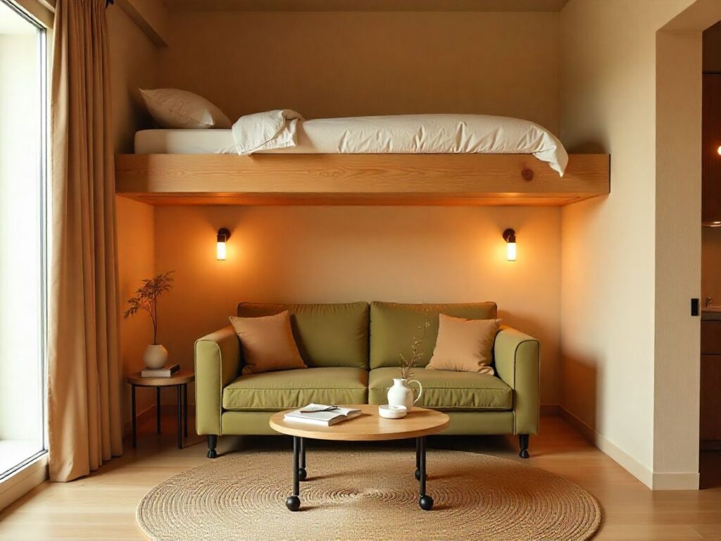 Pair the platform with a fold-flat futon for guests and a high-density mattress for support. Add a quick-lift space behind the futon for bedding. This flexible choice blends minimalist loft bed design ideas with everyday comfort.
