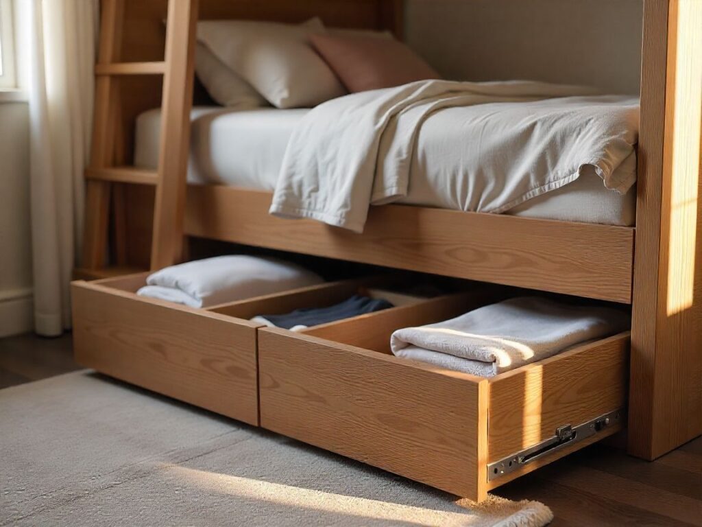 These hidden spots keep the room looking neat. They work well with small loft beds. Smart labeling makes daily life smoother.