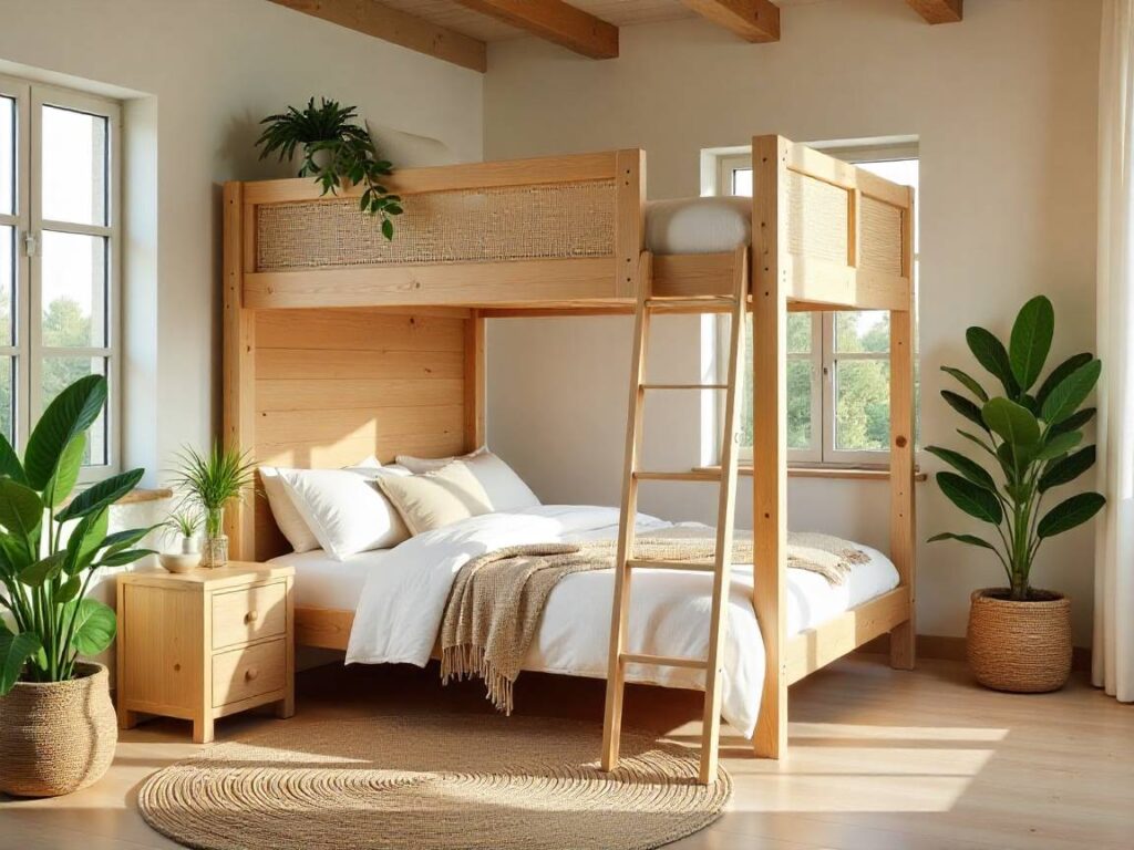 Use teak, white oak, or ash veneers sealed for moisture resistance. Rattan panels boost airflow and add a coastal note common in Gulf homes. Tight joinery and felt washers keep the frame quiet for the best loft bed design for adults.
